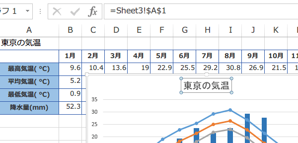 セルに入力された文字列をグラフタイトルとして表示できました。