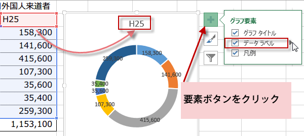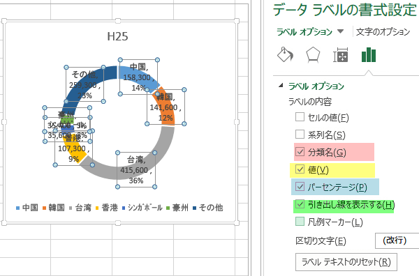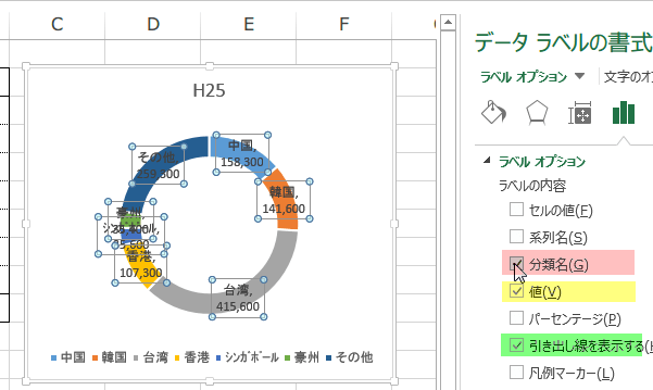グラフのラベルに数値と分類名を表示しましょう。
