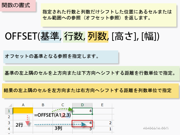 書式 :OFFSET(基準,行数,列数,高さ,幅)