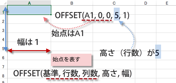 機能 :OFFSET関数は、基準のセルあるいは、セル範囲から