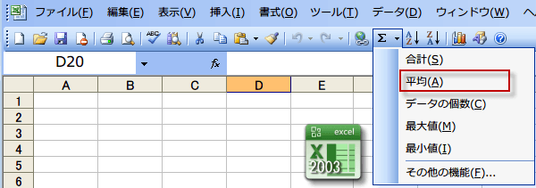 このAVERAGE関数は合計と同様、よく使用する関数として[オートSUM]ボタンの一覧に平均が用意されています。