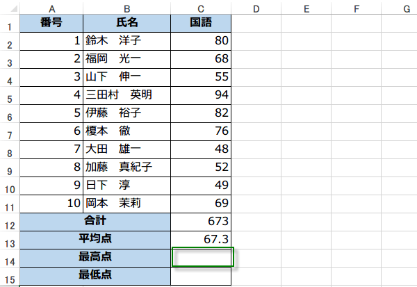 その下に、最高点と最低点をだしましょう。