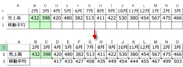 移動平均 SUM関数を使う場合