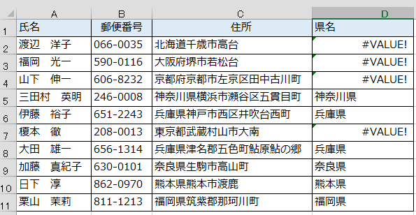 住所録の住所から都道府県名を抜き出します。