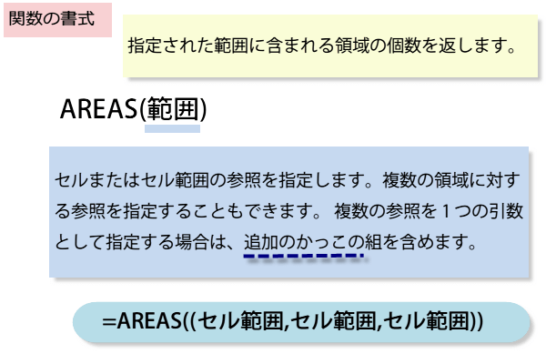 AREAS関数は、指定された範囲に含まれる領域の個数を返します。