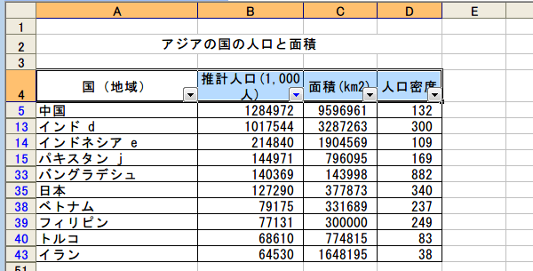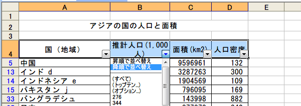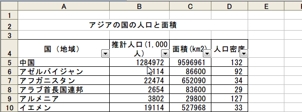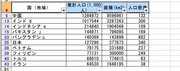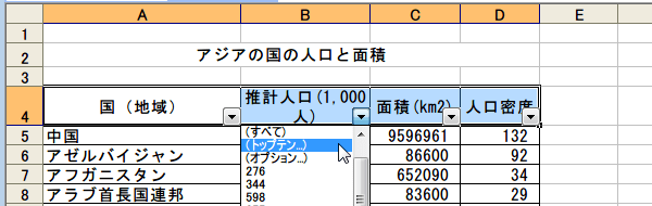 推計人口がトップ10のデータが表示されました。