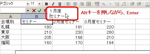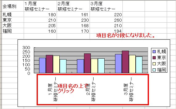 項目名が2段になりました。それぞれのセルで同様に操作してみてください。