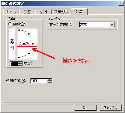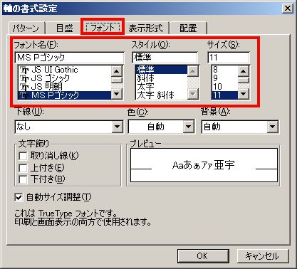 項目名の上でクリックして、軸の書式設定を表示させます。