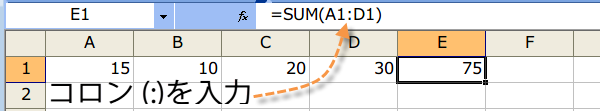 □連続したセル範囲を参照する場合はコロン (:) をつかう