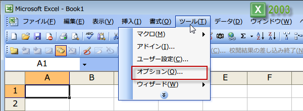 1.ツール→オプション→「全般」タブをクリックする。