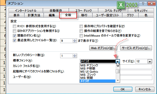3 Excel2003で標準フォントの設定を変える