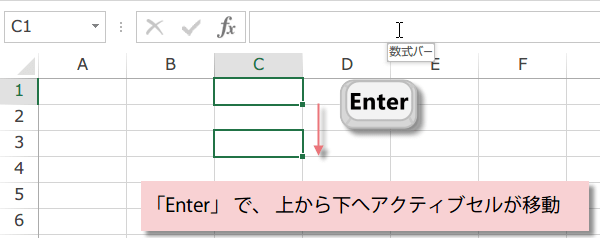 セルでの入力作業を終了する際、 Enter キーを押したときに、どちらに移動するのかを指定することができます。