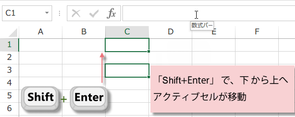 A 「Shift」+「enter」 下から上に(規定とは逆の方向)