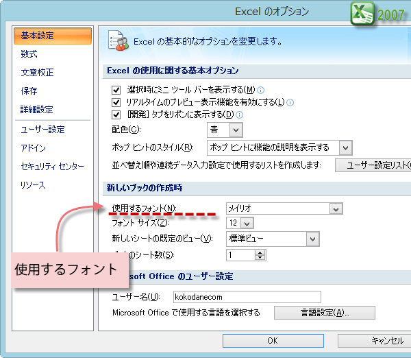 Excel2007の標準フォントを変更する