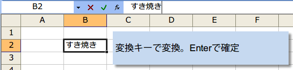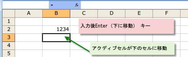 入力後Enter(下に移動) キーまたは Tab (右に移動)キーを押します。