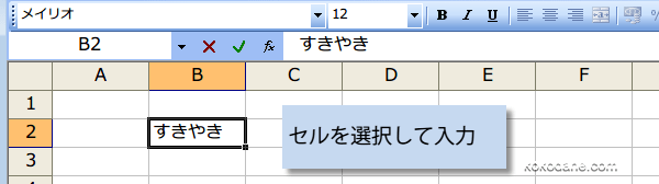 図のように、データを入力するセルをクリックします。