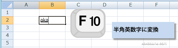 F10キーを押すと、半角英数字に変換されます。スポンサーリンク