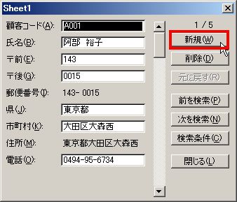 新しくデータを入力するときには「新規」ボタンをクリックします