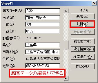 また「削除」ボタンをクリックすると、表示されているデータを削除することができます。