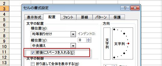 「 前後にスペースを入れる」の選択は横位置の均等割付を選択した場合のみ設定できます。