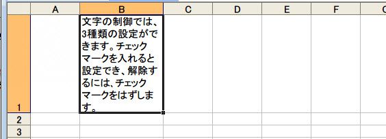 文字の制御では、3種類の設定ができます。チェックマークを入れると設定でき、解除するには、チェックマークをはずします。