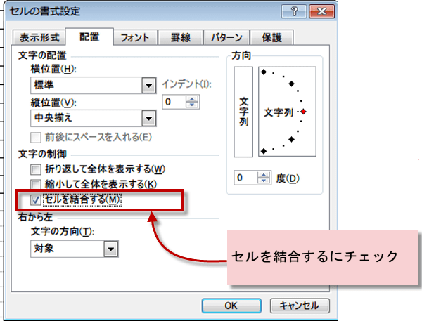 7.セルを結合するには、セルを結合するにチェックを入れます。