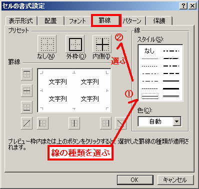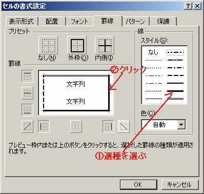 @使用する罫線の種類をクリックし、