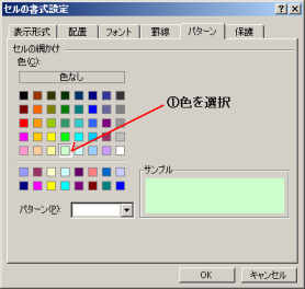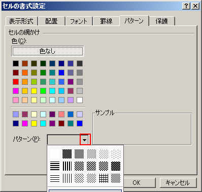 パターンではセルの色と、網掛けの設定ができます。