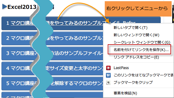 リンクを右クリックして、右クリックメニューから
