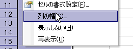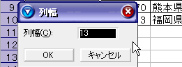 選択した列上で、右クリックし、列の幅を選択数値を13と入力