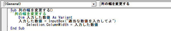 入力した数値 = InputBox("新しい列幅を入力してください。")