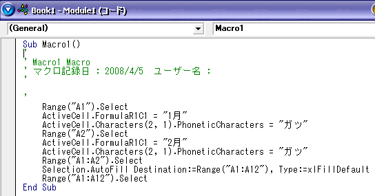 だんだんマクロのコードを見慣れてくると、どこが必要で、どこは
