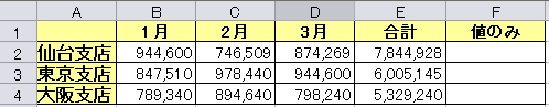 (1)初めに、コピーもとの合計欄(E2:E4)を選択して、コピーします。