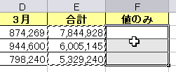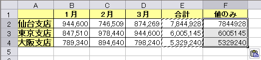 (1)初めに、コピー元の合計欄(E2:E4)を選択して、