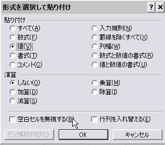 (6)形式を選択して貼り付けダイアログが開きますから、