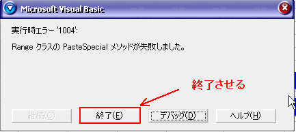 もし、コピーせずに、PasteSpecialを実行しようとすると、エラーになります。