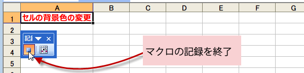 (7)メニューバーの[ツール]-[マクロ]-[記録終了]をクリックしてマクロの記録を終了します。