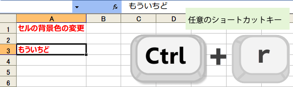それでは、他のセルに文字を入力して、選択状態にしてから、たった今設定したばかりのショートカットキーを押します。