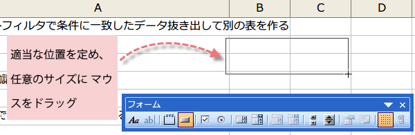 せっかく作ったマクロを利用しやすくするために、マクロのボタンを作成しましょう。