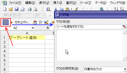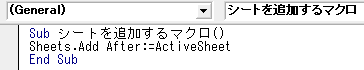 Sub シートを追加するマクロ() Sheets.Add After:=ActiveSheet End Sub