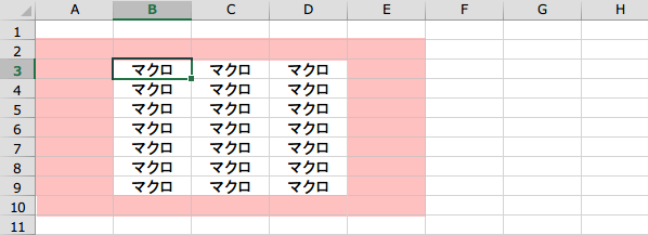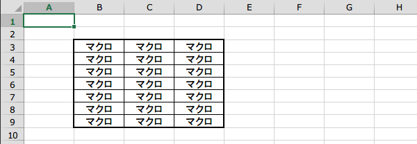 下図のように、枠もなにもない状態で、マクロを実行します。