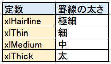 BorderAround メソッドの「Weight」プロパティで設定できる罫線は、次の種類です。