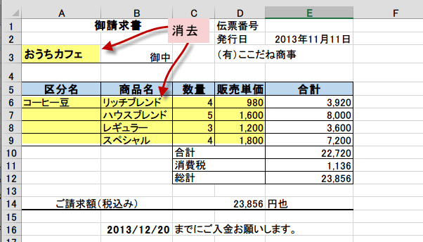請求書のひな形を作り、繰り返し使っている場合は、以前の入力内容を消去するのが、意外とめんどうなものです。