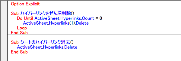 ワークシートのハイパーリンクを全部削除するマクロ〜Excel VBA 3行マクロ
