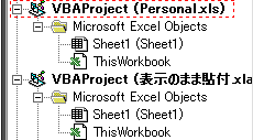 すると、選択したPERSONAL.XLSファイルのツリーにモジュールが追加され、