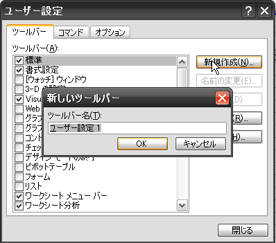 「新規作成」ボタンを押して、ユーザー用のツールバーを新たに作成します。