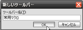 今度は、ボタンではなく、ユーザー設定の「ツールバー」を作成してそこにマクロを登録しましょう。