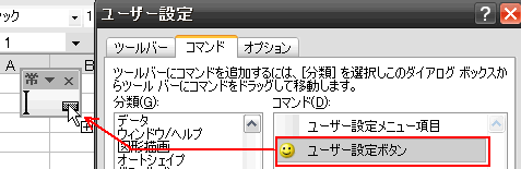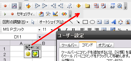 ドラッグする場所が、ユーザー用のツールバーとなります。