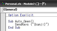 Excel VBA 3行マクロ〜エクセルを起動したとき、日本語入力ソフト(IME)も起動