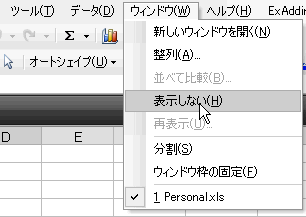 PERSONAL.XLSのウィンドウを非表示にしましょう。